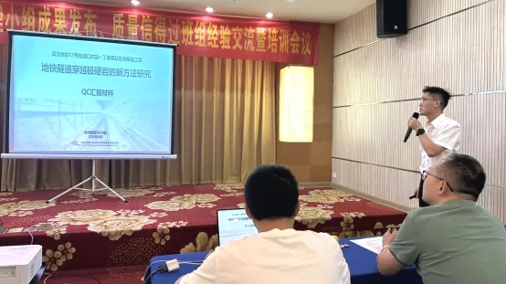 武漢市政院“拾光隧道QC小組”組員龍凡對“地鐵隧道穿越極硬巖的新方案研究”課題進(jìn)行了成果發(fā)布。“拾光隧道QC小組”為解決地鐵隧道穿越極硬巖傳統(tǒng)方法安全難以保證、工作效率較低等痛點問題,研發(fā)了一種地鐵隧道穿越極硬巖的全新技術(shù)方案,攻克了復(fù)雜地質(zhì)和敏感環(huán)境兩大難題。該研究成果在“武漢地鐵12號線港口村站~丁家咀站區(qū)間隧道工程”中,實現(xiàn)盾構(gòu)穿越極硬巖深孔爆破預(yù)處理在武漢軌道交通地下區(qū)間的首次應(yīng)用。“拾光隧道QC小組”對該創(chuàng)新成果進(jìn)行了標(biāo)準(zhǔn)化建設(shè),形成了通用設(shè)計圖和成套技術(shù)方案,現(xiàn)已在全公司推廣應(yīng)用。