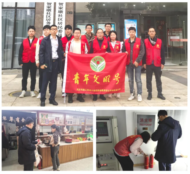 在集中學習實踐活動后,綜合院青年員工又主動到賀家墩社區(qū)開展消防宣傳志愿服務活動。在社區(qū)領(lǐng)導下,宣傳了老舊電器電路斷路、電動車違規(guī)充電、充電器、燃氣灶等風險隱患,滅火器的使用和火災逃生等知識,檢查了消防設施,排查了安全隱患。