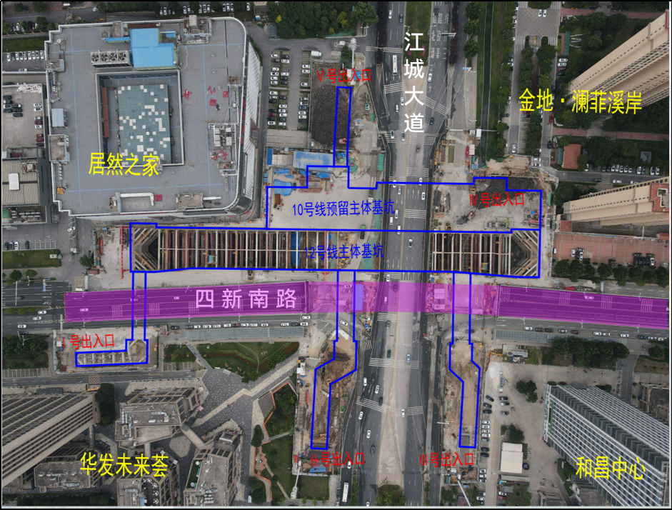 ? ? 超深基坑、超厚軟土、超近施工。本項目設計范圍中的四新南路站,采用明挖順做法施工,基坑深約30m,場地含約20m的深厚淤泥質(zhì)軟土,同時基坑緊鄰已運營的四新南路地下車行通道和居然之家。