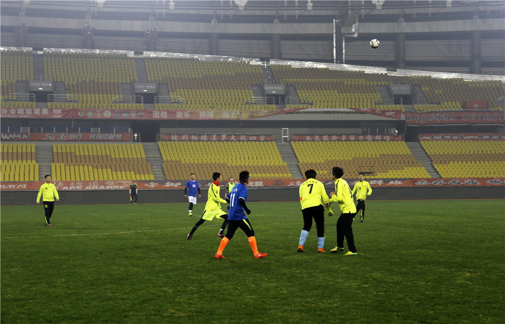 五環(huán)體育中心是武漢市為舉辦第七屆世界軍人運動會新建的規(guī)模最大的比賽場館,曾承擔了軍運會足球、乒乓球、水上救生等項目的比賽。盡管軍運會已經(jīng)過去近三個月了,但如今置身其中,仍然能感受到軍運賽事帶來的澎湃與激情。或許這種情緒也感染著場上的隊員們,他們從一開始就迅速進入了比賽狀態(tài),身穿藍色球衣的東西湖區(qū)聯(lián)隊在開場不久便率先破門攻入一球,但公司的隊員們?nèi)匀环€(wěn)扎穩(wěn)打,很快就將比分扳平。重回同一起跑線的兩隊在隨后的比賽中更是你來我往,展開了高質量的攻防大戰(zhàn),比分交替領先,最終雙方又各進四球,在一場精彩的進球大戰(zhàn)后以5:5的比分握手言和。