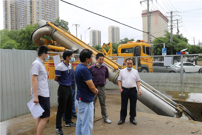 為了詳細(xì)了解武漢市的內(nèi)澇漬水情況,準(zhǔn)確分析內(nèi)澇漬水成因,制定針對性的防汛排澇方案,7月8日上午,總經(jīng)理姚華帶領(lǐng)公司排水專業(yè)技術(shù)專家冒雨奔赴三鎮(zhèn)街頭,實地考察部分區(qū)域內(nèi)澇漬水情況和防澇排漬設(shè)施運行情況,并就進(jìn)一步優(yōu)化區(qū)域排水方案、消除區(qū)域漬水隱患進(jìn)行了現(xiàn)場研討。
