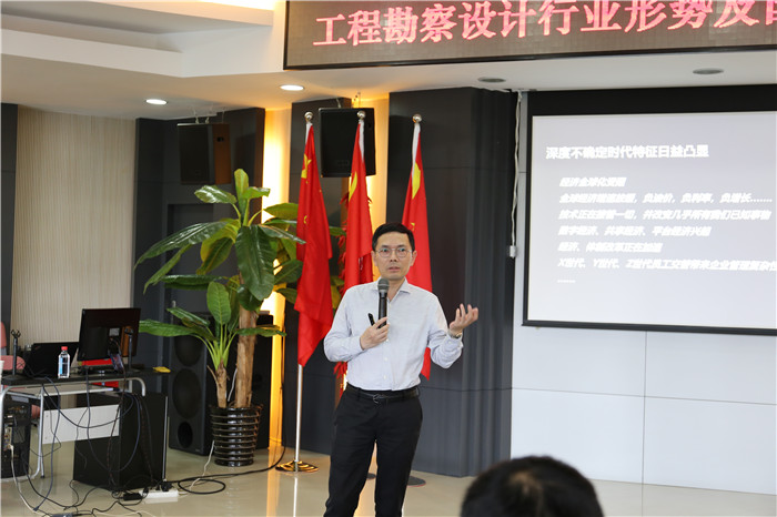 2020年7月24日,公司在西二樓會(huì)議室舉行工程勘察設(shè)計(jì)行業(yè)形勢及國資改革政策環(huán)境分析培訓(xùn)會(huì),邀請?zhí)鞆?qiáng)管理顧問創(chuàng)始人、總經(jīng)理祝波善對當(dāng)前行業(yè)發(fā)展形勢及相關(guān)政策進(jìn)行解讀。公司領(lǐng)導(dǎo)班子、總經(jīng)理助理、公司副總工程師及公司所屬部門(單位)正副職管理人員參加了培訓(xùn)。