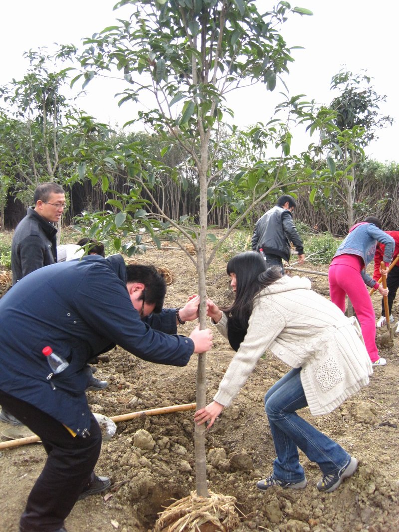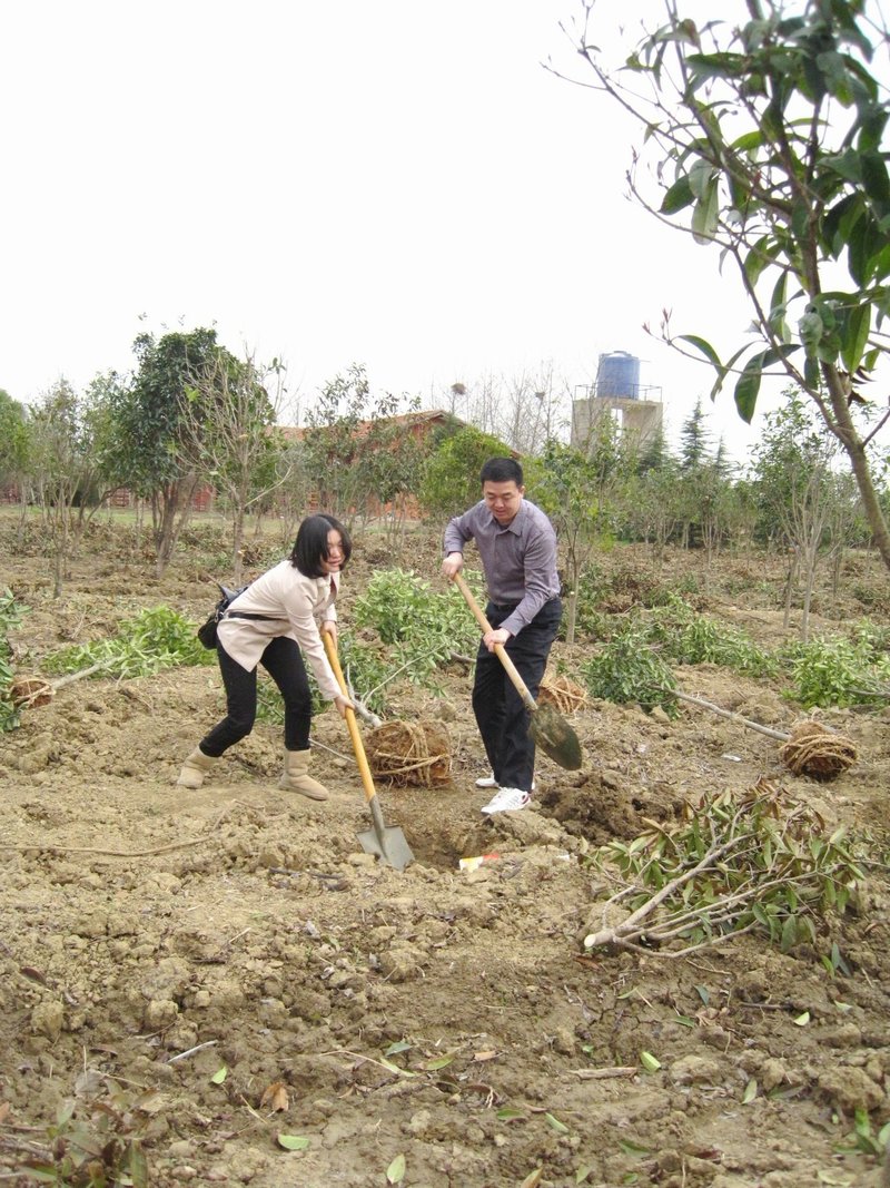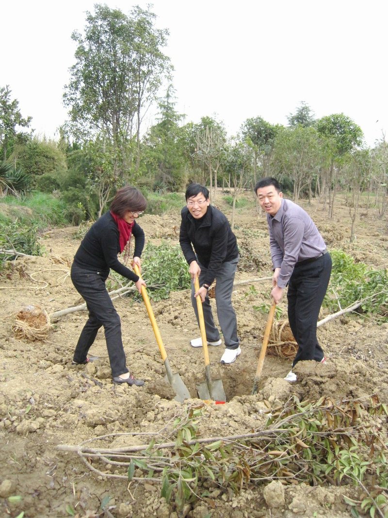 參觀結(jié)束后,員工們來到植樹基地,在工作人員的指導(dǎo)下開始植樹。蔡書記和趙副總經(jīng)理率先垂范,親手種下了幾株樹苗。領(lǐng)導(dǎo)帶頭,員工們自然也不甘人后,大家熱情高漲,你挖我栽,互相配合,不一會,50余棵樹苗已經(jīng)栽種完畢。大家親手制作了信息牌,寫上部門和自己的名字,并舉起相機(jī),在自己的“勞動成果”前合影,見證這次有意義的植樹活動。