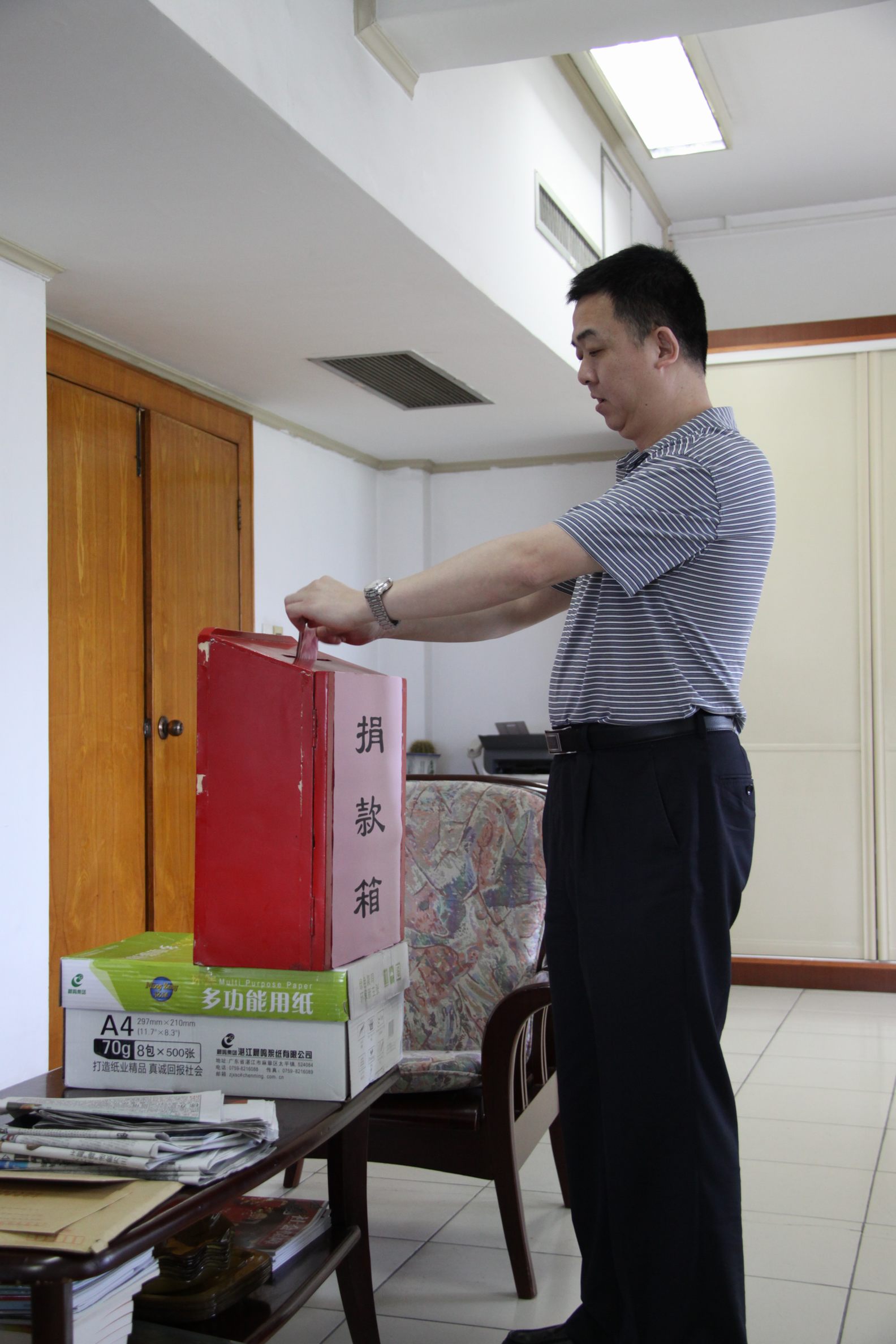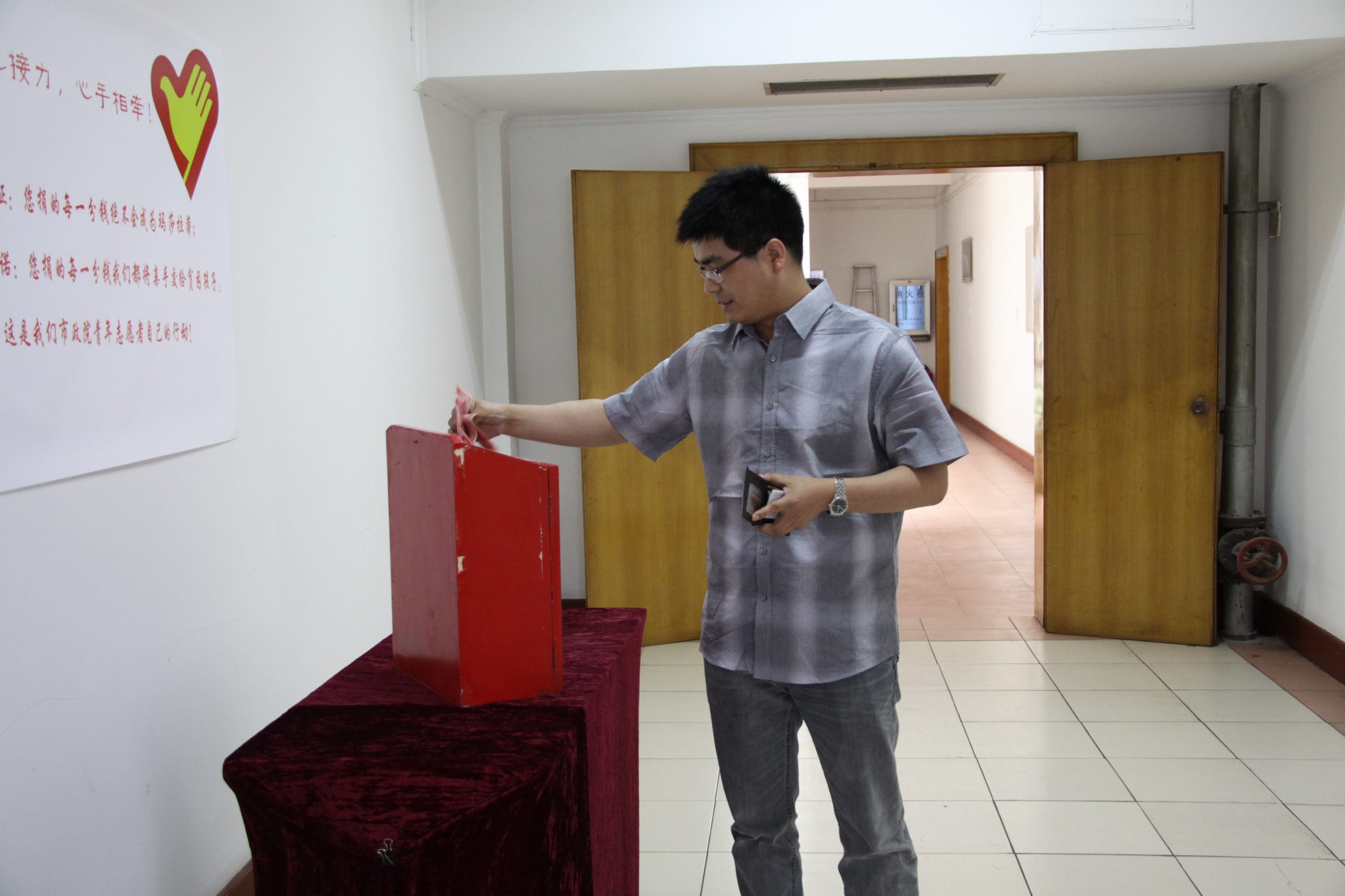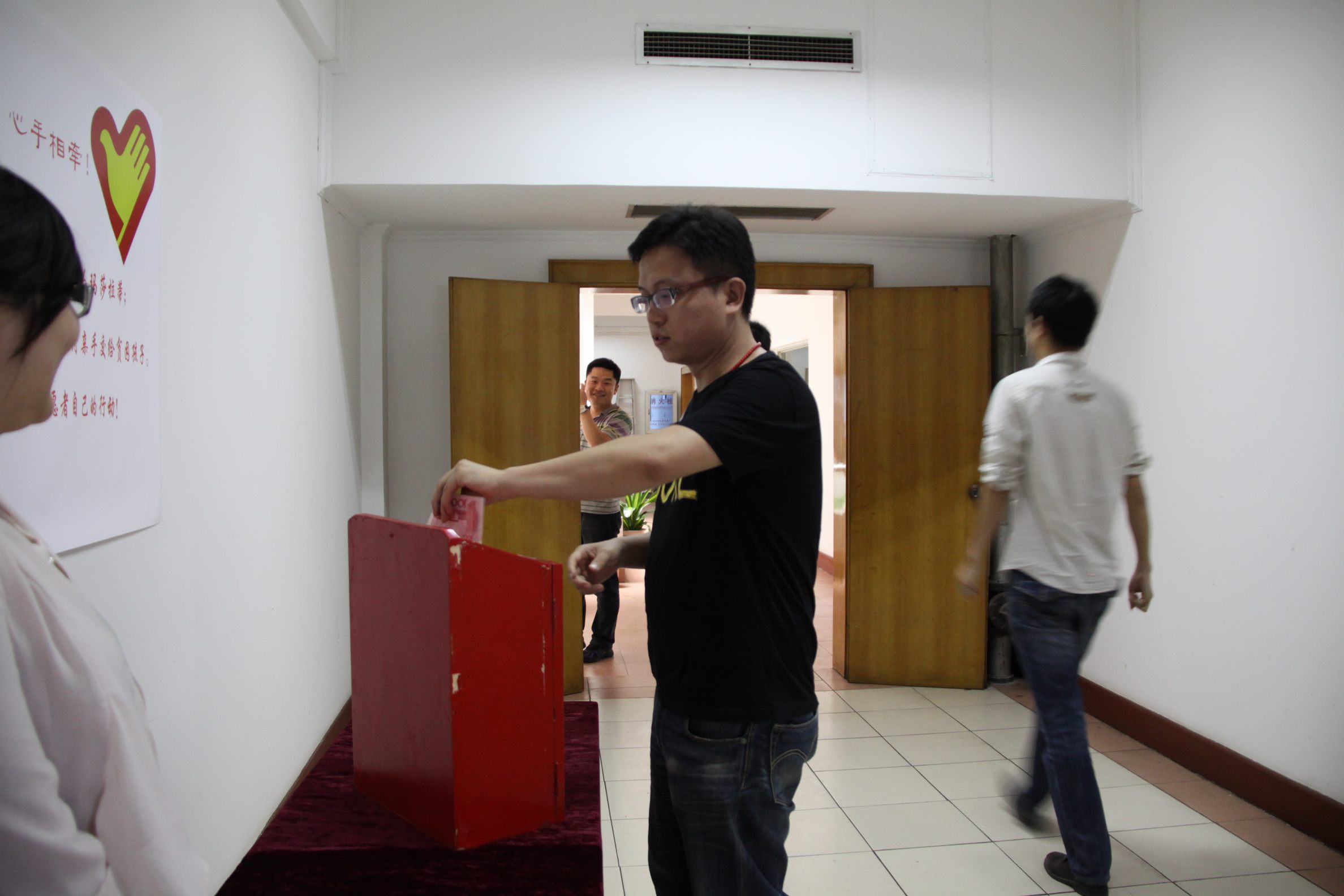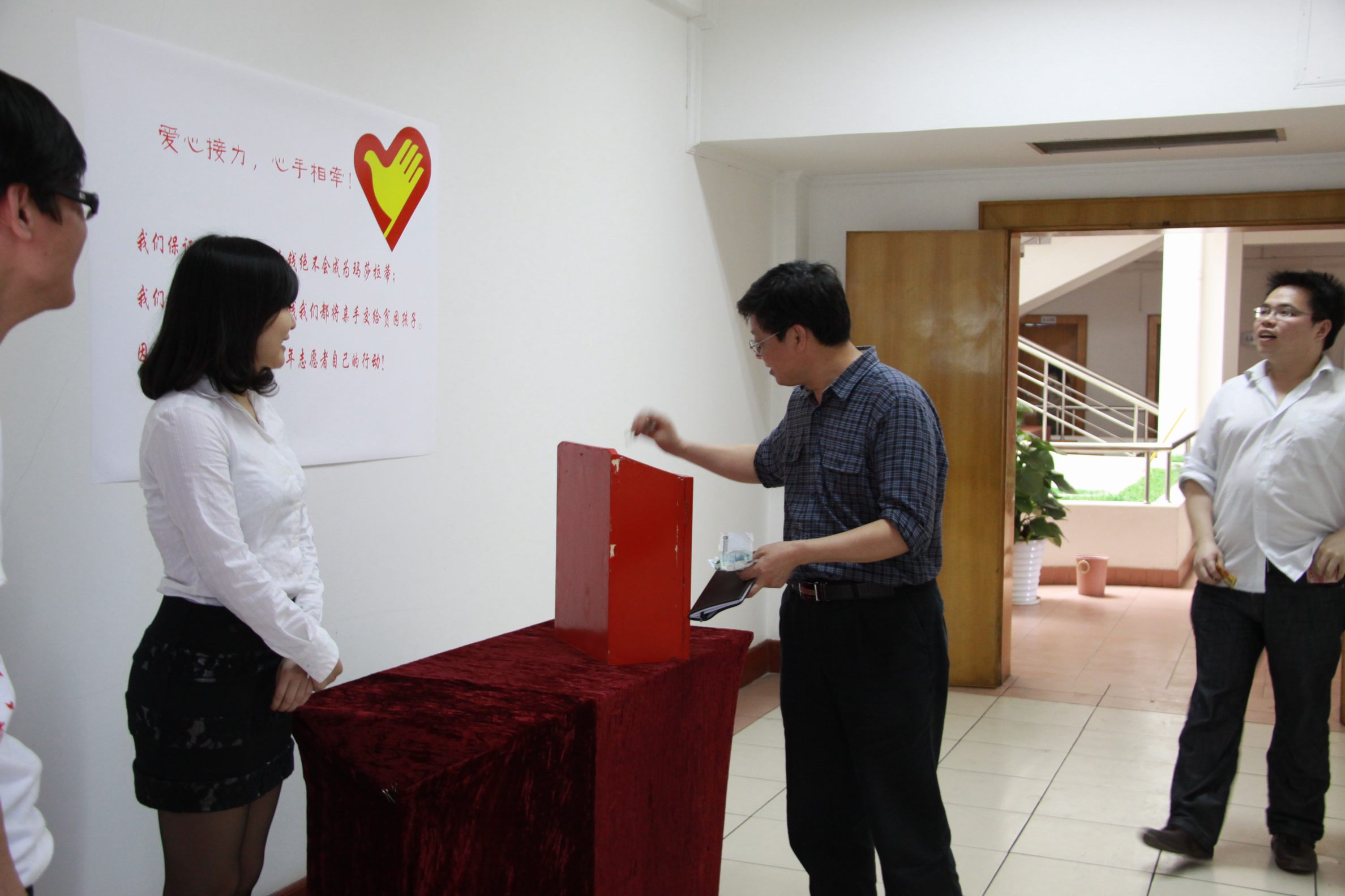 ??? 在“五四”青年節(jié)到來之際,公司青年志愿者代表在食堂設(shè)置了捐款箱,開展愛心募捐活動(dòng)。孩子們的貧困生活感動(dòng)了許多人,在得知為學(xué)生募捐的消息后,公司員工紛紛慷慨解囊,一筆筆善款代表著一顆顆愛心,匯聚到捐款箱中,真情在每個(gè)人心中涌動(dòng)、流淌。