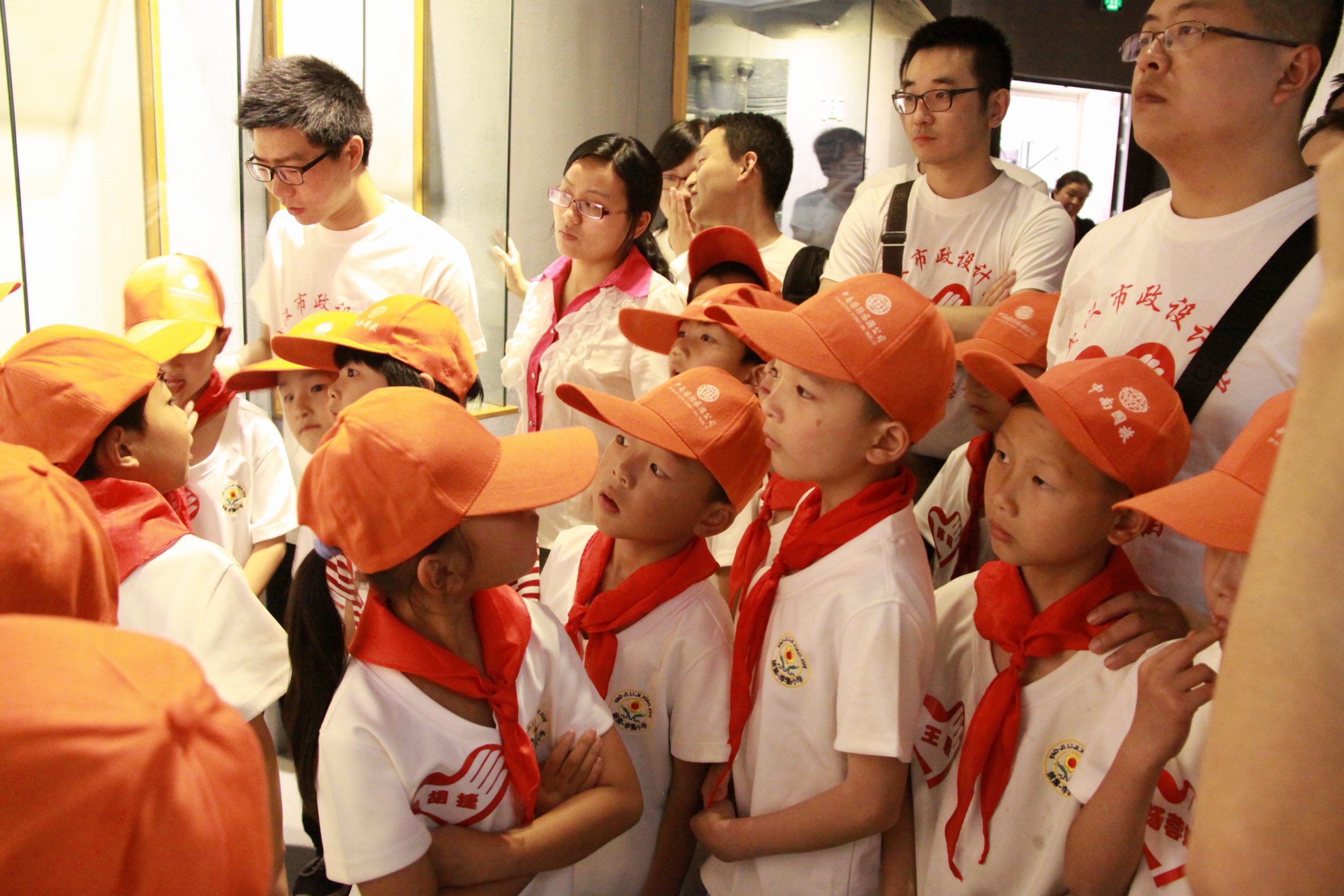 ??? 為了保證本次活動(dòng)的順利進(jìn)行,公司安排了二十名志愿者與學(xué)生們一對(duì)一結(jié)對(duì)而行。上午十點(diǎn),當(dāng)滿載學(xué)生的車輛緩緩駛進(jìn)活動(dòng)的第一站——武漢市博物館時(shí),早已等候在那里的志愿者們用掌聲歡迎遠(yuǎn)道而來的小客人,并與自己結(jié)對(duì)的學(xué)生手牽手走入博物館參觀。學(xué)生們跟隨導(dǎo)游的講解,了解了武漢由發(fā)祥到發(fā)展,到今天取得的成就。部分古代出土的器物吸引住了他們的目光,他們有的圍在導(dǎo)游周圍問這問那,有的拉著結(jié)對(duì)的哥哥姐姐合影拍照。