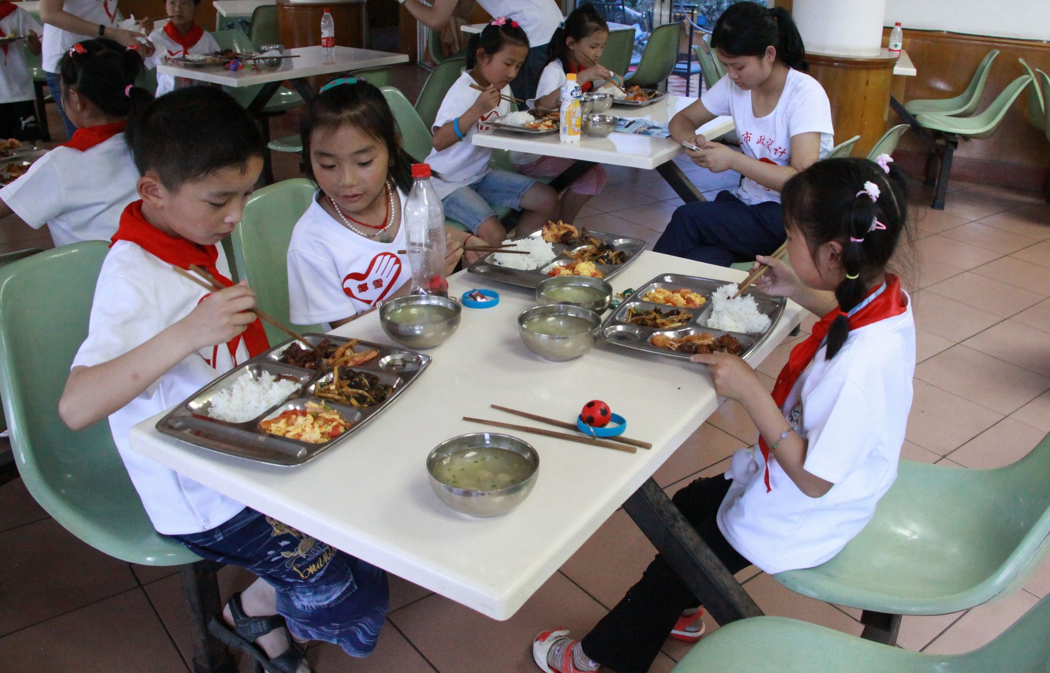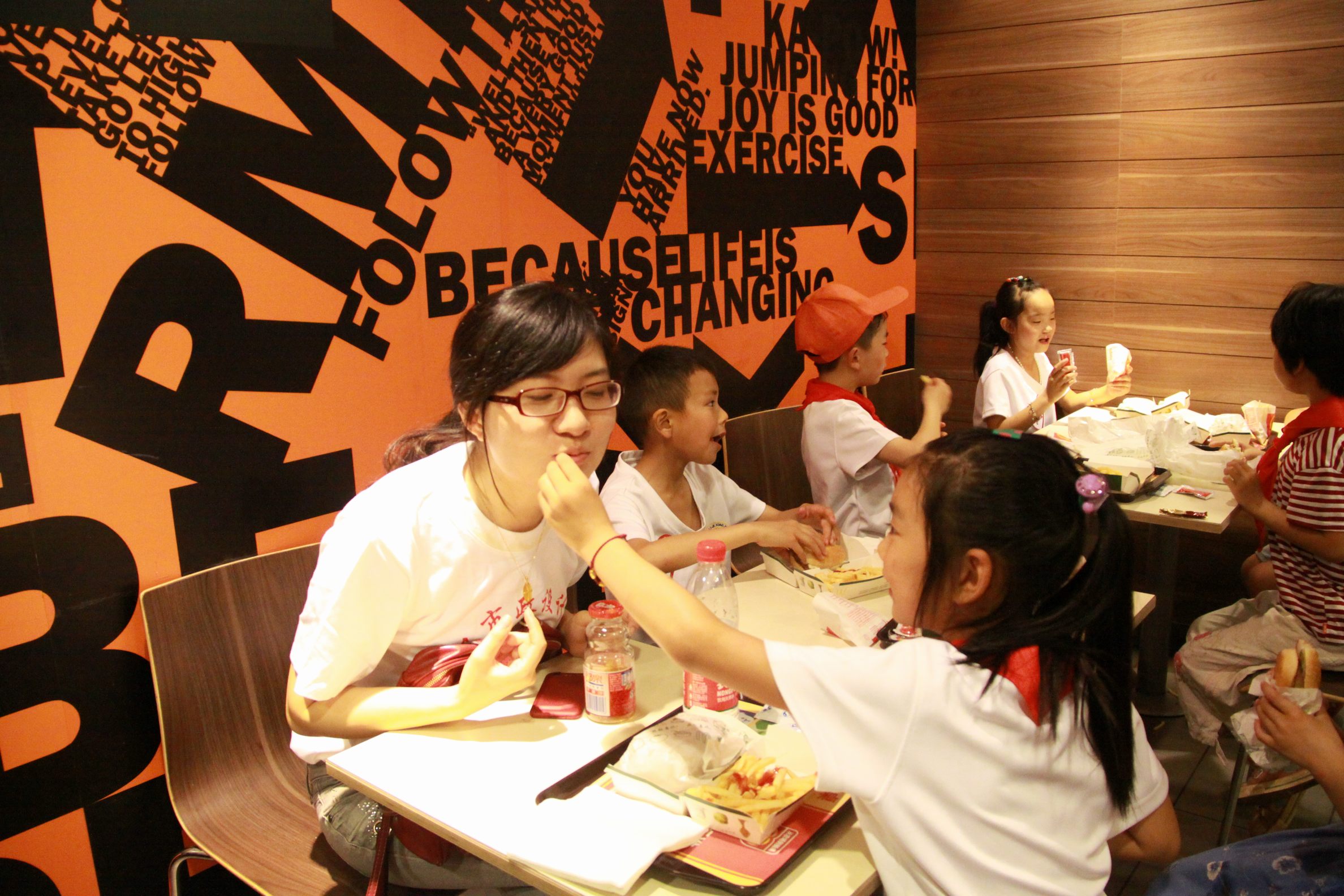 ??? 中午時(shí)分,孩子們乘車來到公司,公司黨委書記蔡輝、副總經(jīng)理趙世杰走出辦公樓歡迎師生們的到來,并與他們合影留念。隨后,志愿者與小朋友們一起來到麥當(dāng)勞餐廳共進(jìn)午餐,餐廳游樂區(qū)的玩具引起了孩子們的極大興趣,他們上攀下爬,玩的不亦樂乎。