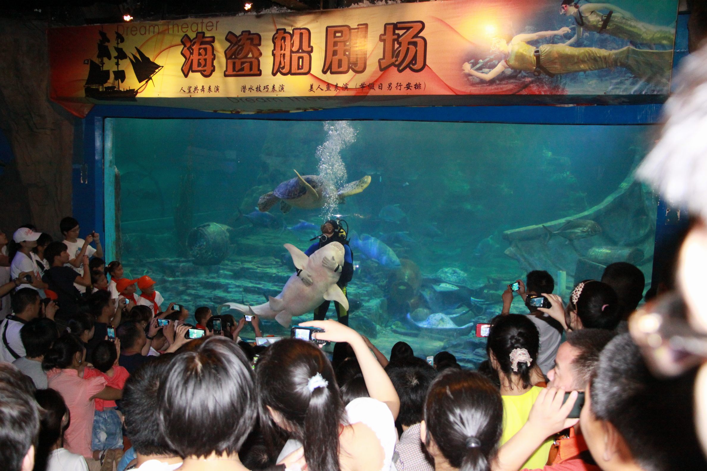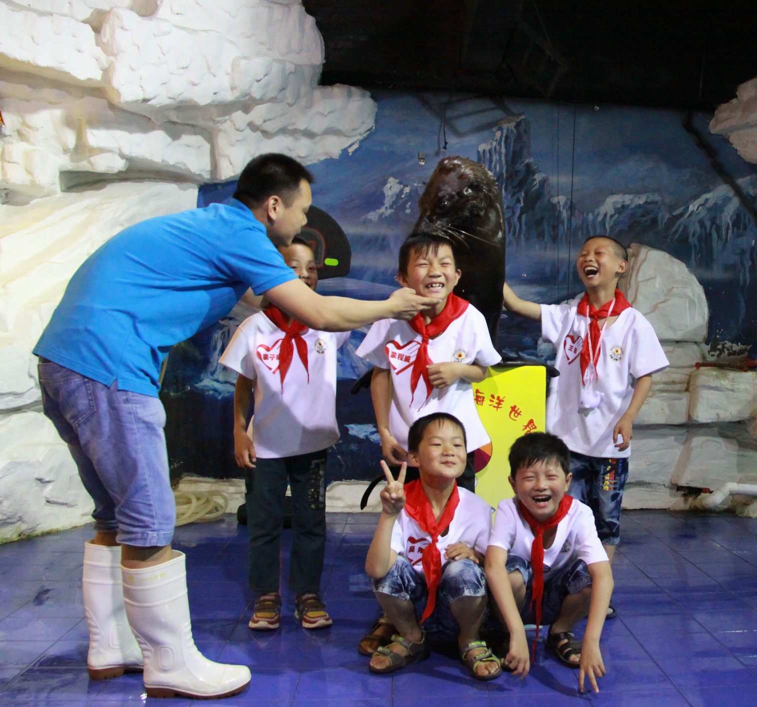 ??? 經(jīng)過短暫的休整,大家乘車來到東湖海洋世界進(jìn)行參觀。剛一進(jìn)館,孩子們就被一片神秘的海底世界所吸引了,他們趴在玻璃上欣賞著自己從沒見過的海洋動(dòng)物,和喜歡的動(dòng)物合影,穿過海底隧道時(shí),時(shí)而出現(xiàn)的海洋動(dòng)物都能讓他們發(fā)出一陣陣的驚嘆。美人魚表演和海豹表演更讓孩子們開心不已,他們不停的拍手鼓掌,并輪流和可愛的海豹合影。