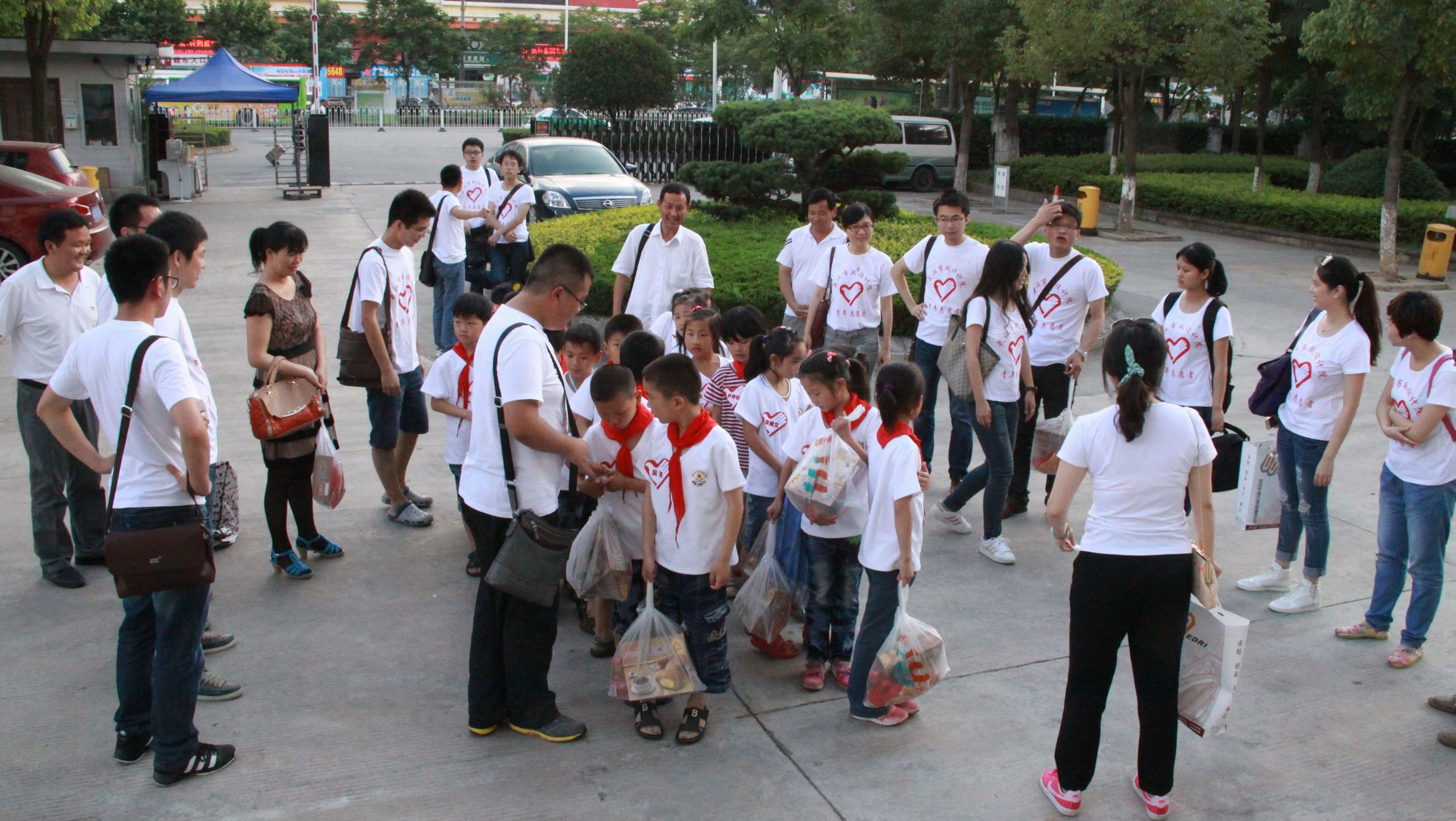 ??? 晚餐結(jié)束后,志愿者們與孩子們手拉手走出公司大門。志愿者隊(duì)長(zhǎng)向李集小學(xué)領(lǐng)導(dǎo)贈(zèng)送了文體用品,隊(duì)員們也為孩子們送上早已準(zhǔn)備好的食品及小禮物,并送他們上車。告別的瞬間,隊(duì)員們向車上的孩子們揮手告別,目送車輛遠(yuǎn)去,車上的孩子們也揮動(dòng)著自己的小手,向公司志愿者們致意,為這次充實(shí)而難忘的活動(dòng)畫上了圓滿的句號(hào)。