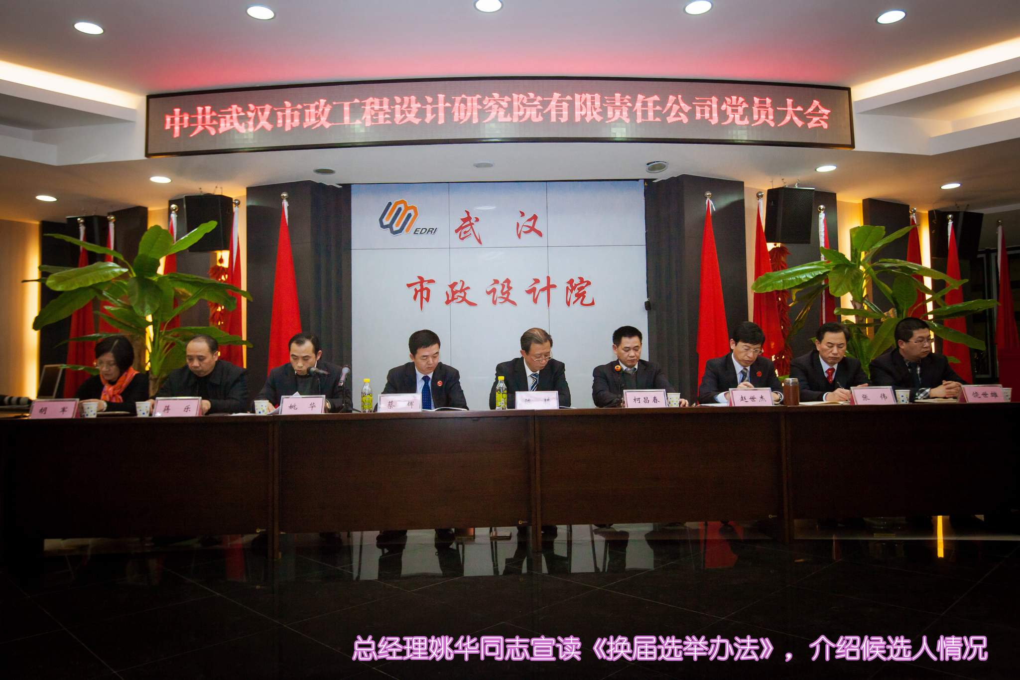 ??? 1月23日,公司召開黨員大會,選舉產生了新一屆中共武漢市政工程設計研究院有限責任公司委員會、紀律檢查委員會。武漢市城鄉(xiāng)建設委員會機關黨委專職副書記陳耕同志到會指導,公司200余名黨員參會,會議由公司董事長、黨委副書記柯昌春同志主持。