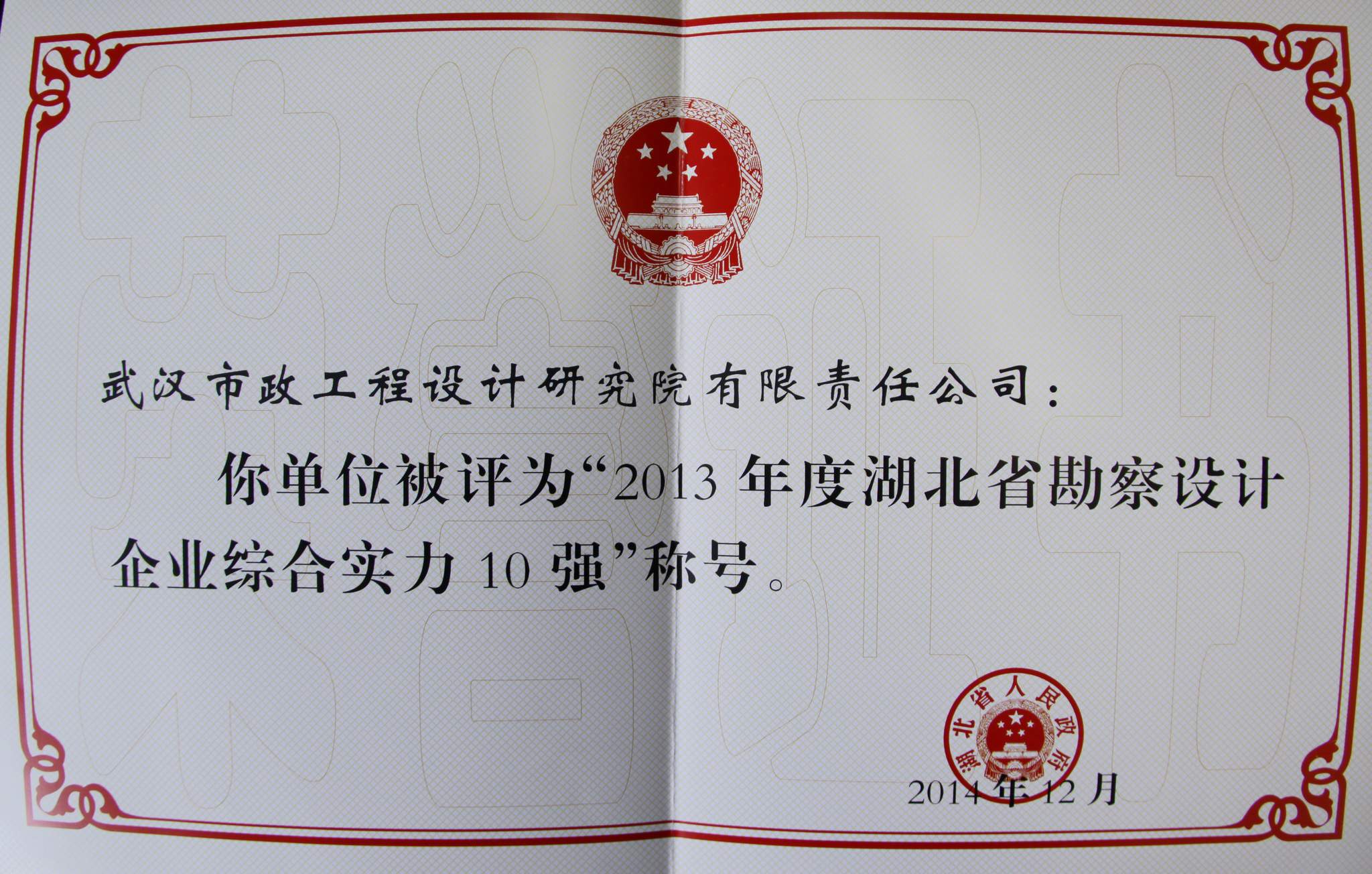 ??? 2月12日,湖北省住房城鄉(xiāng)建設(shè)工作會(huì)議暨黨風(fēng)廉政建設(shè)工作會(huì)議在洪山禮堂召開,會(huì)議正式下發(fā)文件,對(duì)2013年度湖北省勘察設(shè)計(jì)企業(yè)綜合實(shí)力十強(qiáng)進(jìn)行表彰,公司憑借近年來在行業(yè)中的突出表現(xiàn)而榜上有名。