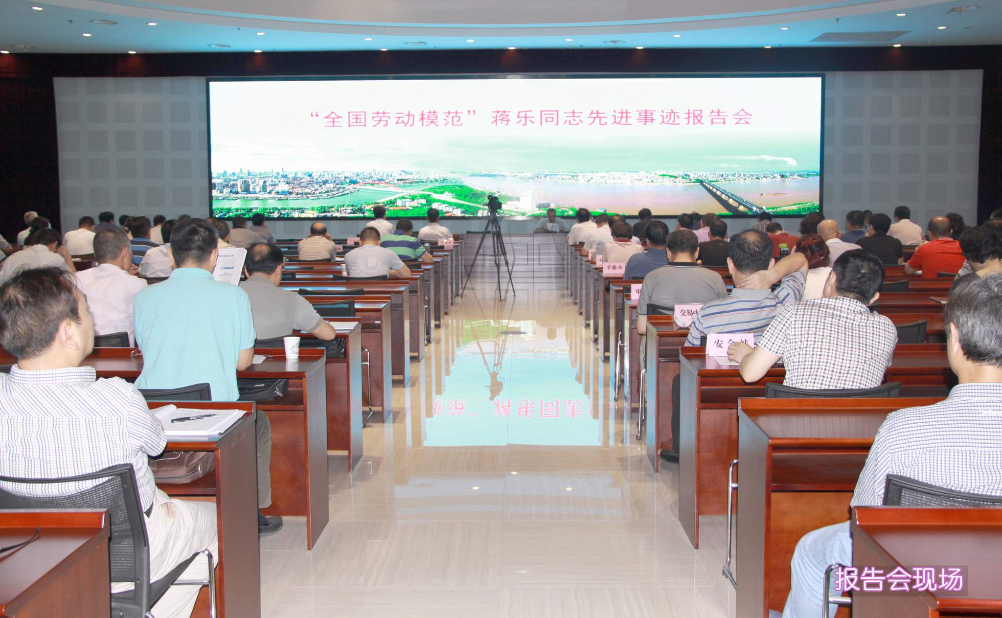 ??? 6月26日上午,市城建委一樓報(bào)告廳氣氛莊嚴(yán),座無(wú)虛席,“全國(guó)勞動(dòng)模范”蔣樂(lè)同志先進(jìn)事跡報(bào)告會(huì)在這里舉行,來(lái)自全市城建系統(tǒng)的近兩百名工作者參加了大會(huì),市城建委彭浩主任等領(lǐng)導(dǎo)出席大會(huì),公司領(lǐng)導(dǎo)、黨支部書記參加了會(huì)議。