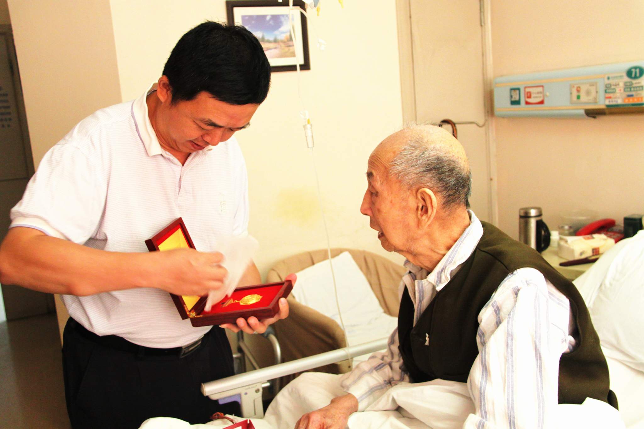 ??? 今年是中國(guó)人民抗日戰(zhàn)爭(zhēng)勝利七十周年,為了緬懷歷史,表達(dá)對(duì)革命前輩的敬仰之情,8月28日上午,公司黨委書記蔡輝等一行前往協(xié)和醫(yī)院,慰問(wèn)公司抗戰(zhàn)離休老干部陳貴德同志。
