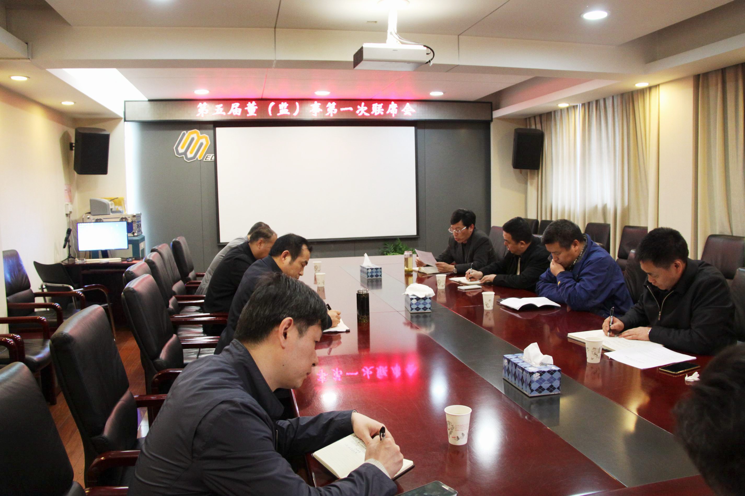 ??? 4月7日下午,公司在三樓會議室召開第五屆董(監(jiān))事第一次聯(lián)席會,就新一屆董事會、監(jiān)事會等相關(guān)事宜進(jìn)行了討論,第五屆職工持股會理事會理事長趙世杰主持會議,市城建委政治處主任楊建春到會指導(dǎo)。