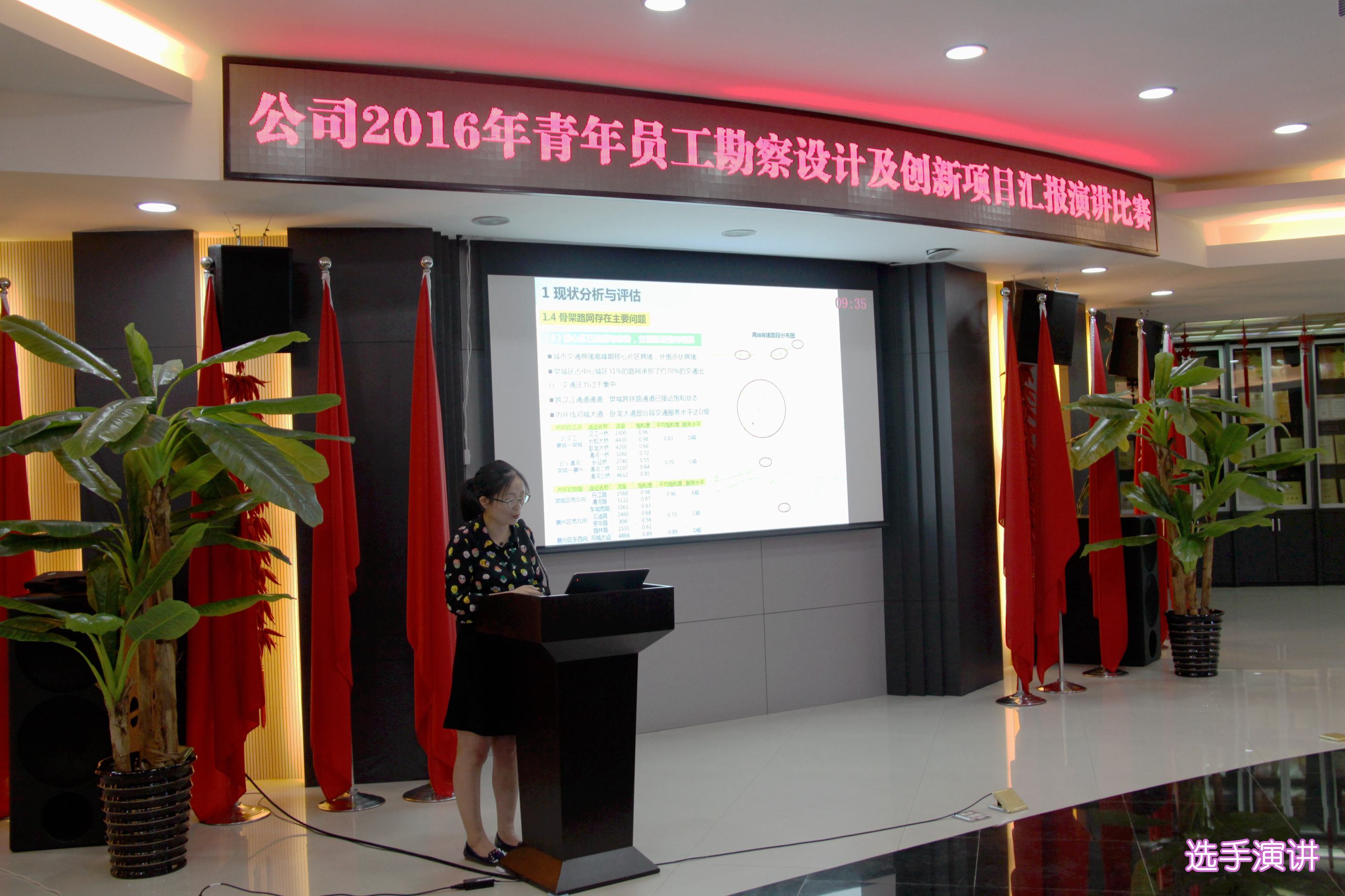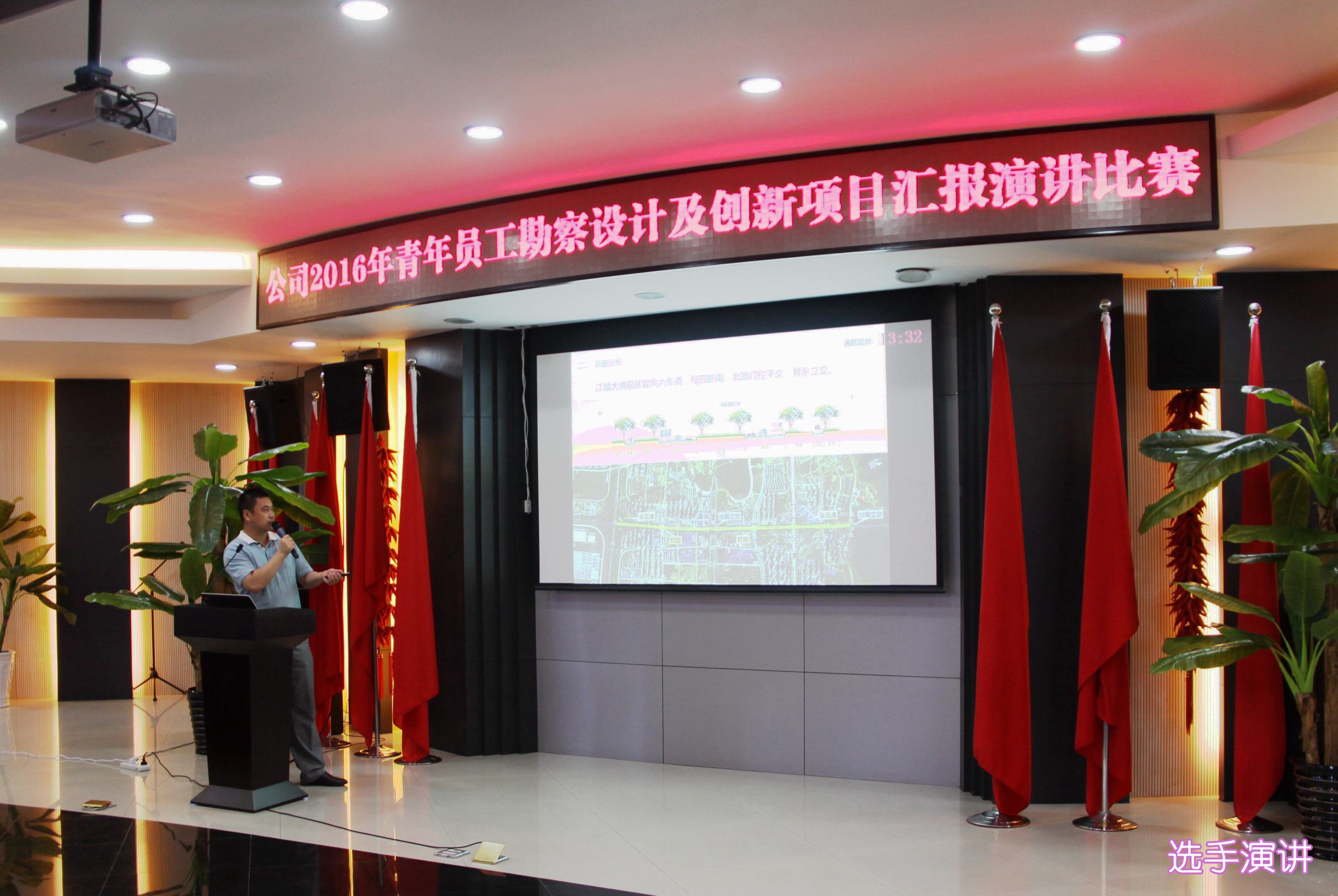 ??? 8月26日,一場(chǎng)以創(chuàng)新為主題的勘察設(shè)計(jì)及創(chuàng)新項(xiàng)目匯報(bào)演講比賽在公司二樓會(huì)議室舉行。參加本次演講比賽的11位青年員工從各部門(mén)、各專(zhuān)業(yè)的精心選拔中脫穎而出,具備了一定的技術(shù)能力和演講水平,是青年員工中的佼佼者。本次演講比賽吸引了近百名員工參加,由6名評(píng)委組成的評(píng)委會(huì)對(duì)演講人的綜合表現(xiàn)進(jìn)行評(píng)分,并以此為依據(jù)確定名次。公司相關(guān)領(lǐng)導(dǎo)出席了本次活動(dòng)。
