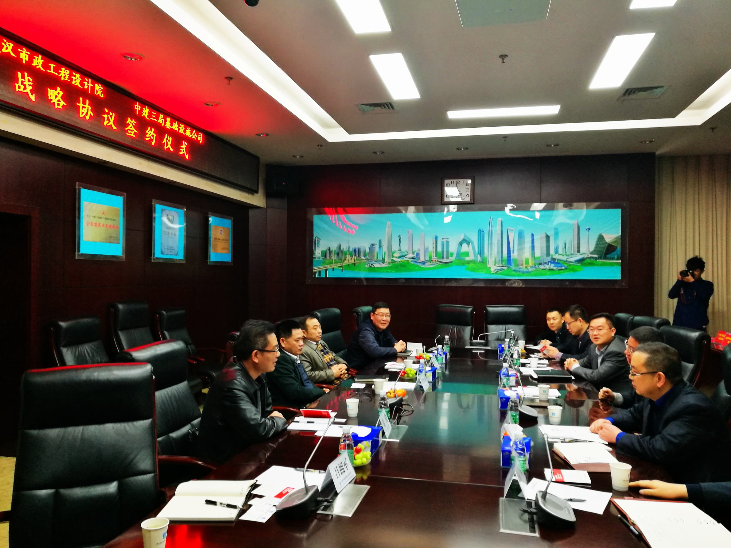 ??? 協(xié)議簽訂前,雙方進行了簡短的會談,公司董事長柯昌春和中建三局基礎設施工程有限公司董事長王洪濤就雙方各自的基本情況進行了介紹,就雙方戰(zhàn)略合作方向和前景進行了展望。雙方共同表示,期待以本次戰(zhàn)略合作協(xié)議簽訂為契機,推動雙方在更廣泛的領域進行合作,攜手進行市場開拓,實現(xiàn)互利共贏。