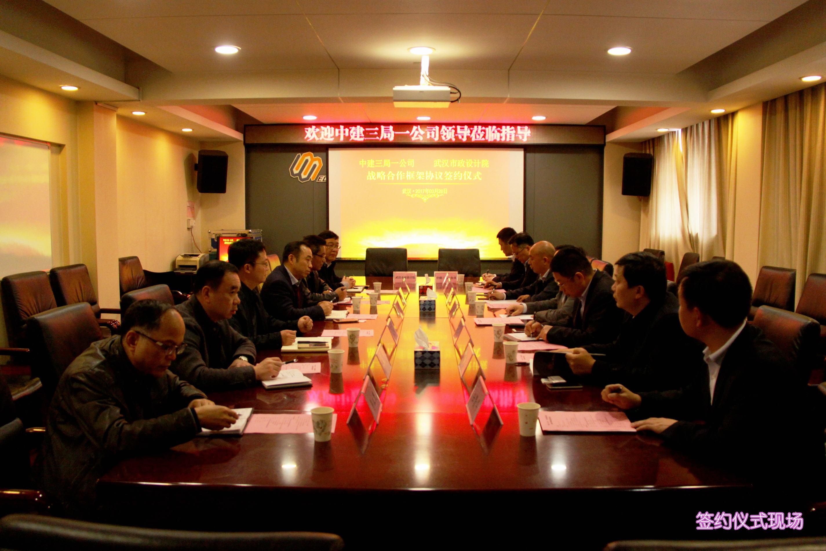 ??? 3月28日,公司與中建三局一公司“戰(zhàn)略合作框架協(xié)議”簽約儀式在公司西三樓會議室舉行,中建三局一公司黨委書記、總經(jīng)理吳紅濤,副總經(jīng)理萬大勇,司鵬飛、夏元云等參加了簽約儀式。