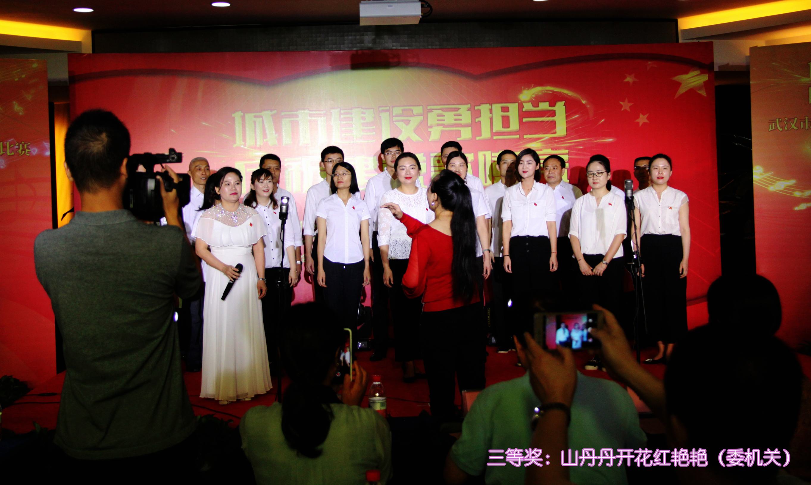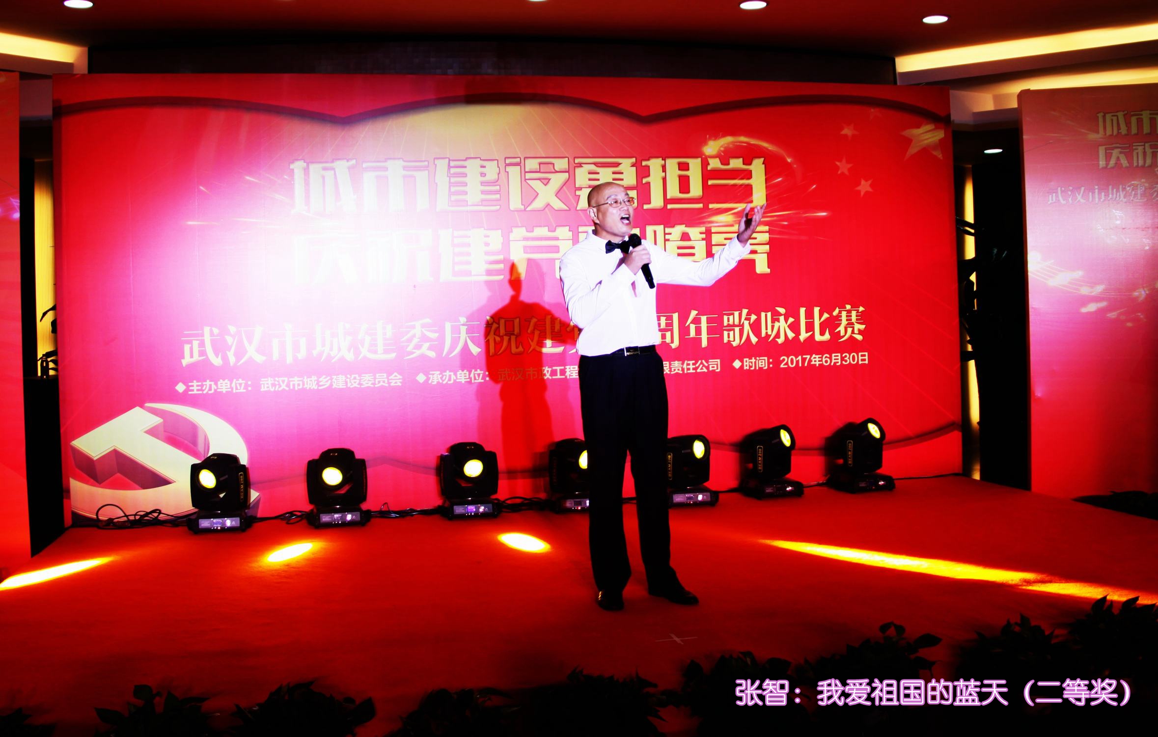 ??? 最終,公司員工張智演繹的歌曲《我愛祖國的藍天》榮獲了本次比賽的二等獎,一等獎被建筑質監(jiān)站的合唱《沂蒙頌》奪得,陳勁超等領導分別為獲獎者頒獎,并合影留念。