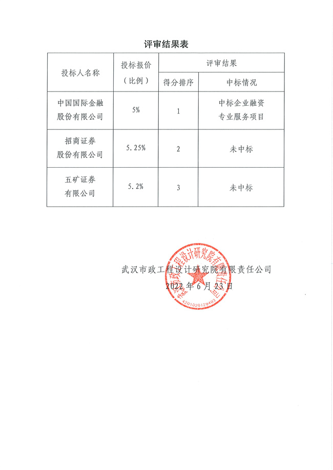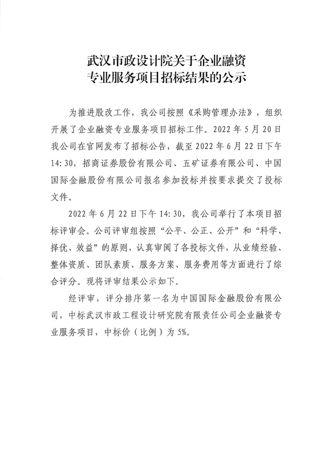 關(guān)于企業(yè)融資專(zhuān)業(yè)服務(wù)項(xiàng)目招標(biāo)結(jié)果的公示