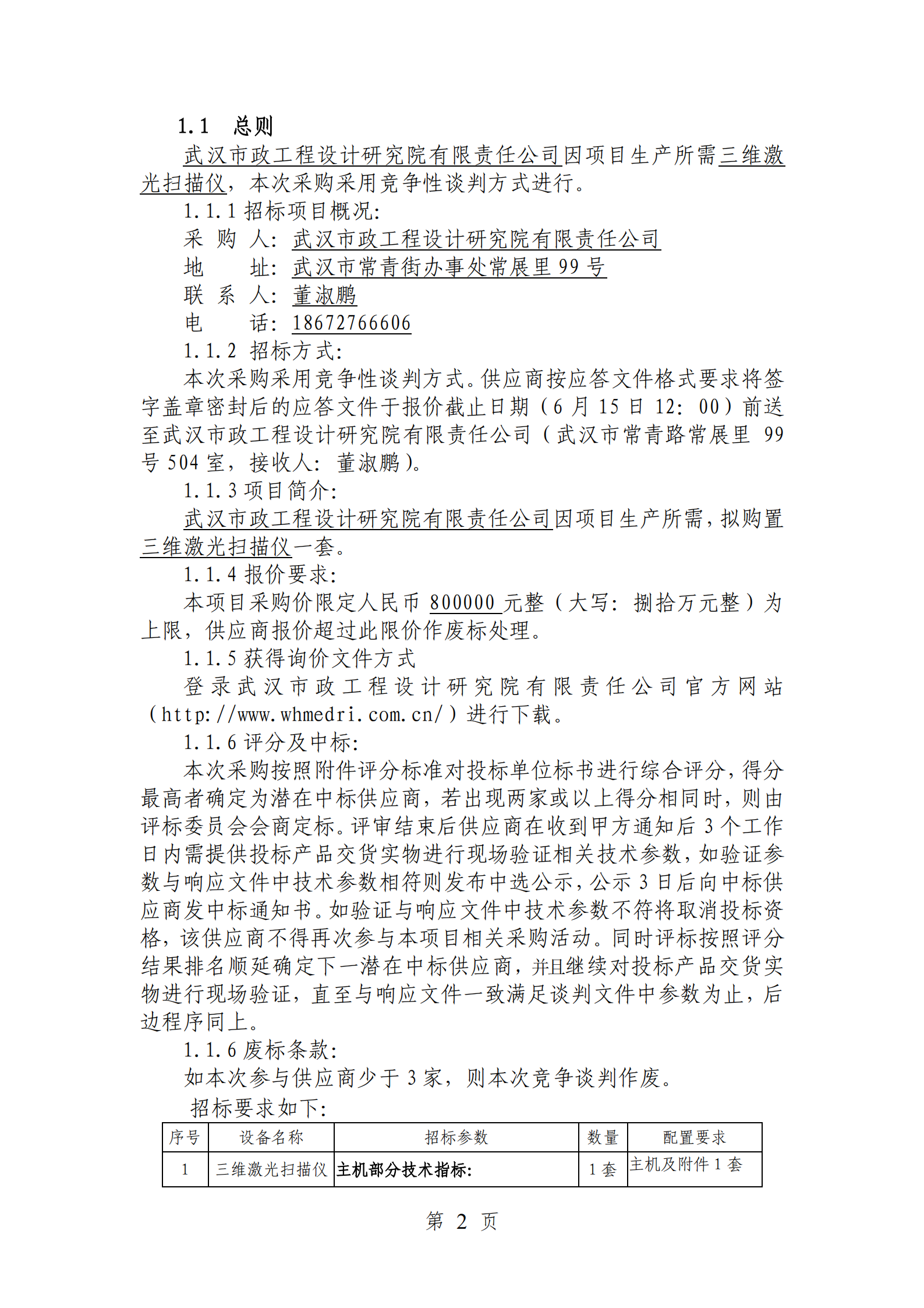 三維激光掃描儀競(jìng)爭(zhēng)性談判文件