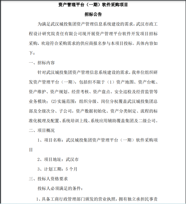 資產(chǎn)管理平臺(一期)軟件采購項目 招標(biāo)公告